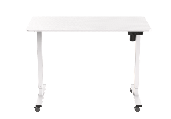 パソコン工房セレクト商品『電動昇降機能付きゲーミングデスク』は、天板の高さを自由に調節することができるゲーミングデスクです。天板の高さは床から、約73 (フットパッド装着時)~118cm (フットパッド装着時)約78 (キャスター装着時)~122cm (キャスター装着時)の高さまで調節可能です。天板の広さは約幅120cm・奥行60cm と広々としたスペースを確保できます。