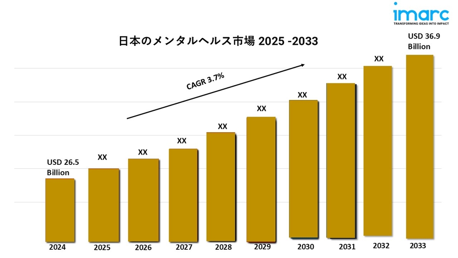 日本のメンタルヘルス市場規模は、2024年に265億米ドルに達しました。今後、IMARCグループは、2025年から2033年の間に3.7%の成長率(CAGR)を示し、2033年までに市場が369億米ドルに達すると予想しています。