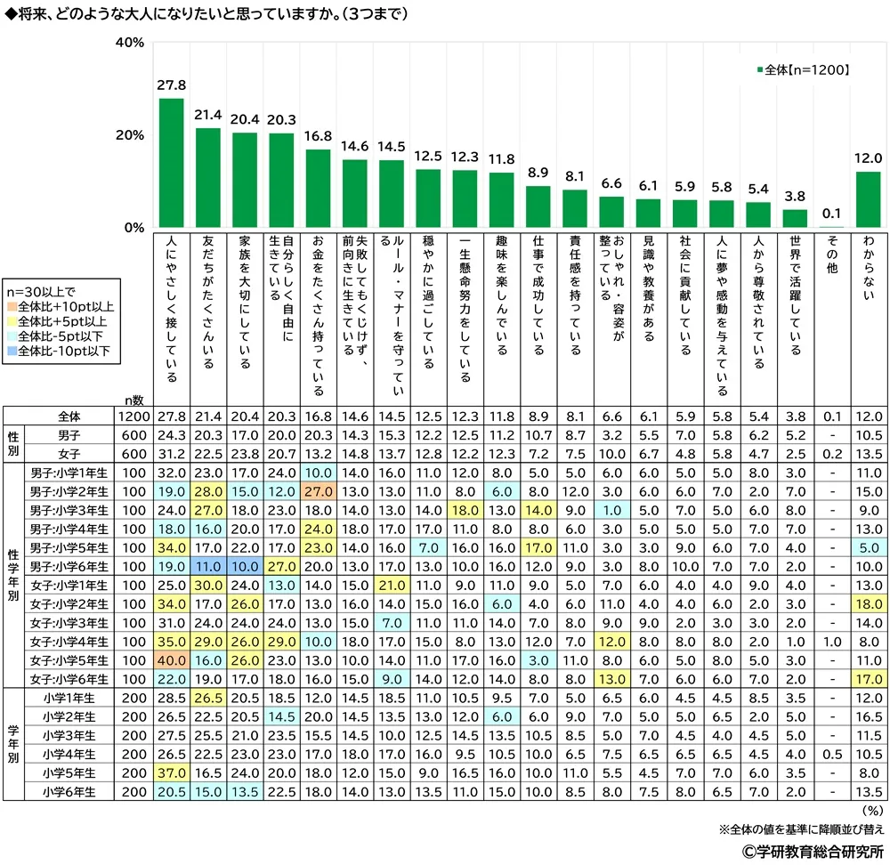 ★将来、どのような大人になりたい? 1位「人にやさしく接している」、2位「友だちがたくさんいる」