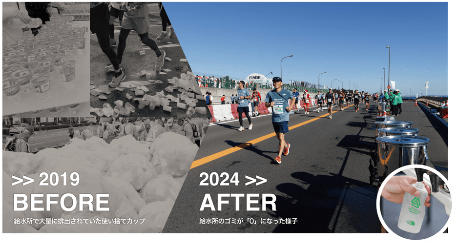 今年で3回目となる「マイカップ・マイボトル」マラソンは、ランナーやボランティアの間でさらに浸透。特にスタート時のゴミ削減を目指した新たな取り組みが成果を上げ、“持続可能なマラソン”への進化を遂げています。