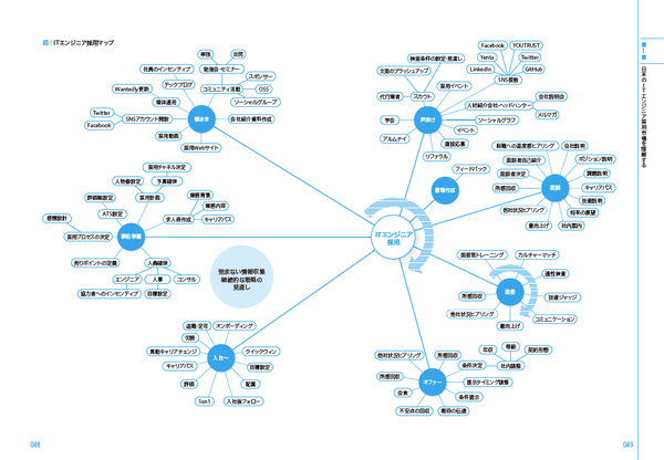 次に、採用プロセスの決定、自社のブランディング、採用媒体の運用などを詳しく解説。そしてITエンジニアの募集の仕方、面談・面接の仕方、内定の出し方などにつなげていきます。
