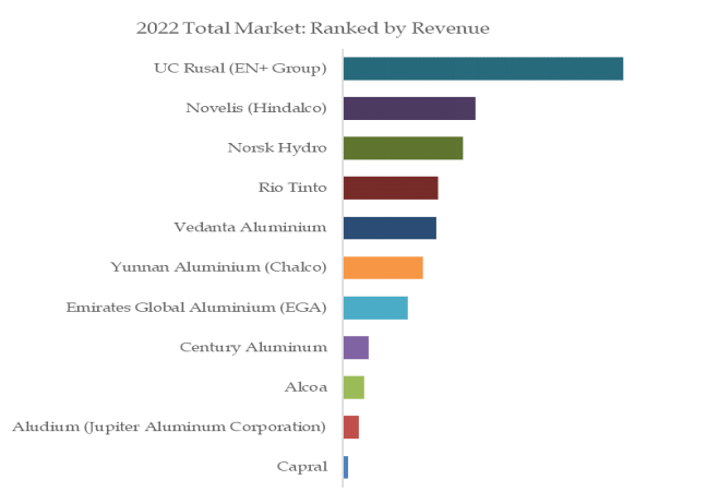 2022年、世界のグリーン低炭素アルミの上位5社は、売上高で市場シェアの44.1%を占める。上図は、グリーン低炭素アルミニウムの売上高でランク付けされた主要プレーヤーを示している。