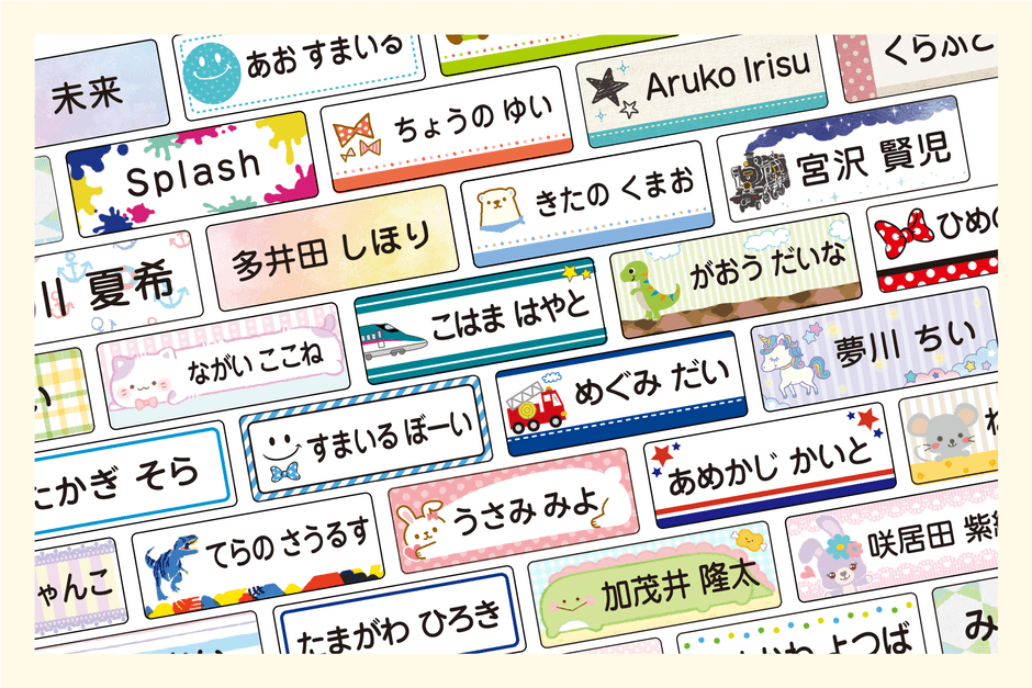 デザインは、すべてシールDEネームオリジナル。イラスト入りの個性的なデザインから、小学生でも使いやすいシンプルなデザインも多数、取り揃えています。