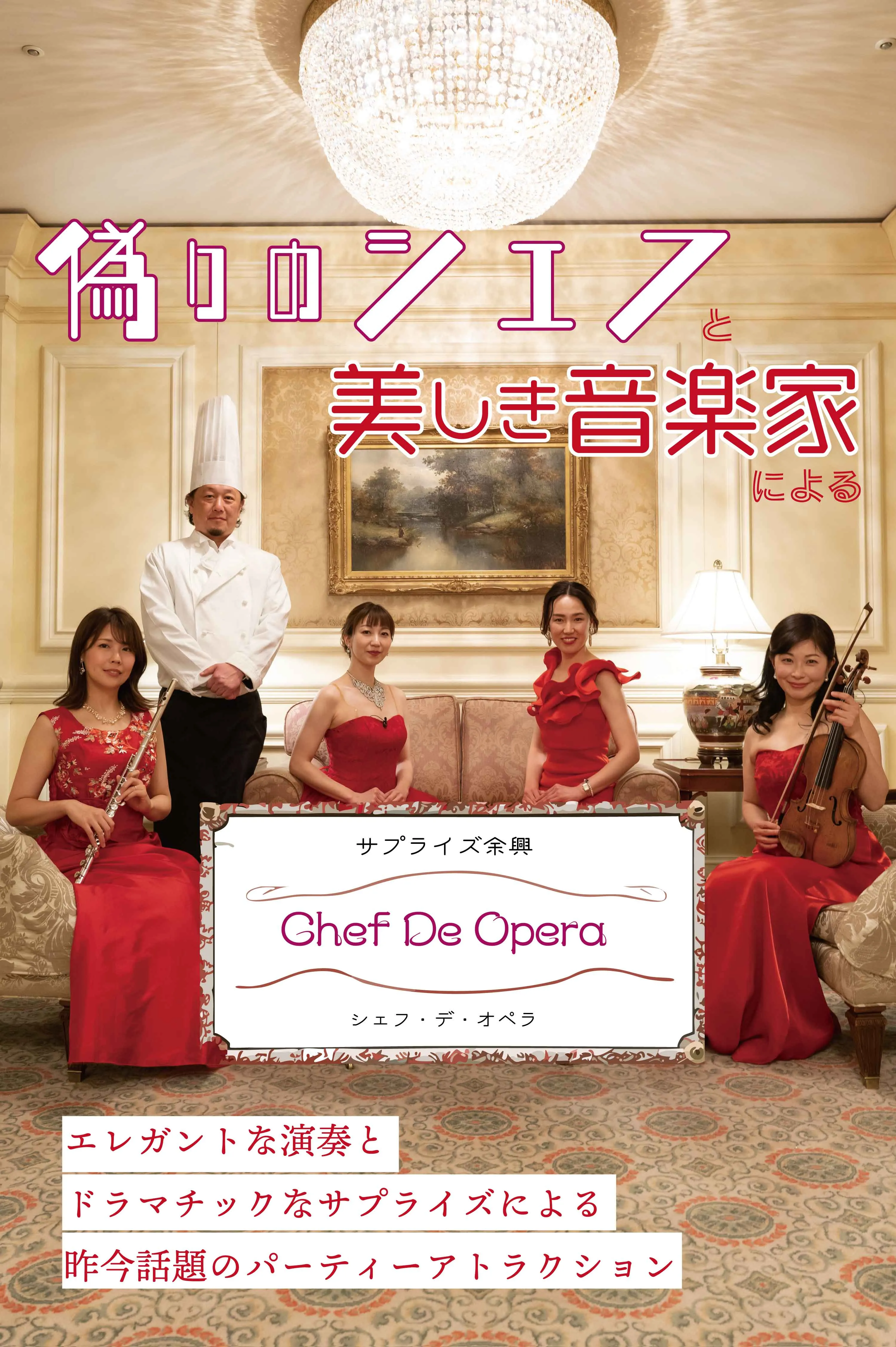 男性オペラ歌手が扮する偽シェフが登場し、演奏家を巻き込み歌い出し、ゲストにサプライズでオペラを提供すします。