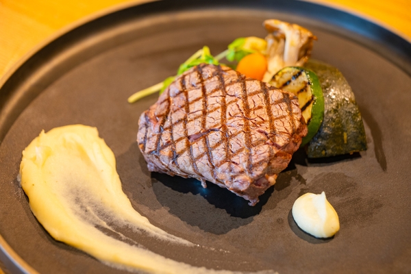 本館レストラン(The Day GRILL)では、モエ・エ・シャンドンの華やかな果実味に合わせた冬限定のコースディナーを提供。前菜の「炙りカマンベールと冬野菜のサラダ」にはじまり、「オマール海老のパナード焼き」や「国産牛フィレ肉のグリル〜赤ワイン香るソース〜」など、シャンパンの泡と響き合う料理長渾身の逸品をお楽しみいただけます。