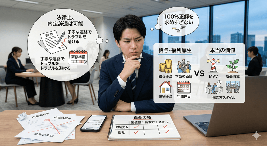 内定承諾後の辞退は決して“禁じられた行為”ではありません。しかし、あなたのキャリアに関わる重要な判断であり、マナーを欠くとリスクも生まれます。