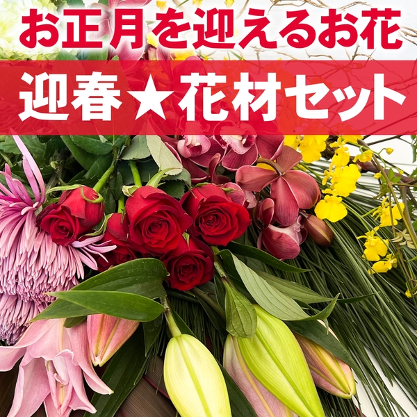 お正月の縁起物に華やかなお花を合わせた、JFCオリジナルデザインの迎春アレンジメント6種と、ご自分で生けたいという方向けに、たっぷり入ってお得なお正月花材セット4種をご用意いたしました。