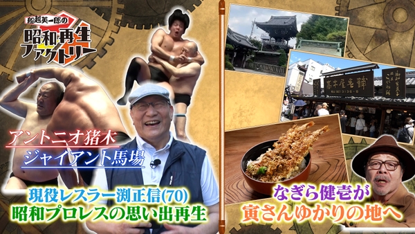 全国無料放送のBS12 トゥエルビ(本社:東京都渋谷区、代表取締役社長:降籏邦義)は、「船越英一郎の昭和再生ファクトリー」を毎週木曜よる9時~放送しています。7月18日の放送は、『昭和プロレスの思い出を再生(ゲスト:渕正信、越中詩郎)』、『なぎら健壱の昭和探訪(柴又編)』の2本立てでお届けします。
