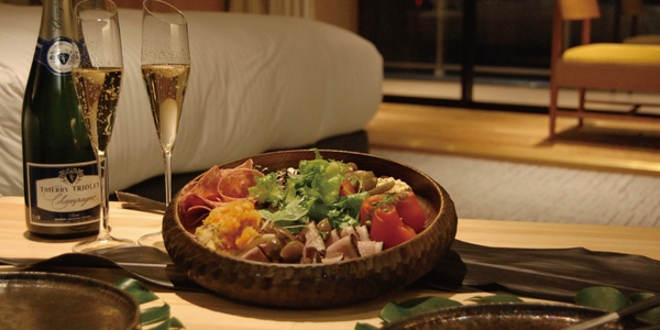 また、夕食は野菜メインのオードブルと、おひとり様につき1杯のドリンクをお部屋にご用意いたします。コロナ禍でも安心して自分たちだけの空間で、ゆっくりとおくつろぎいただけます
