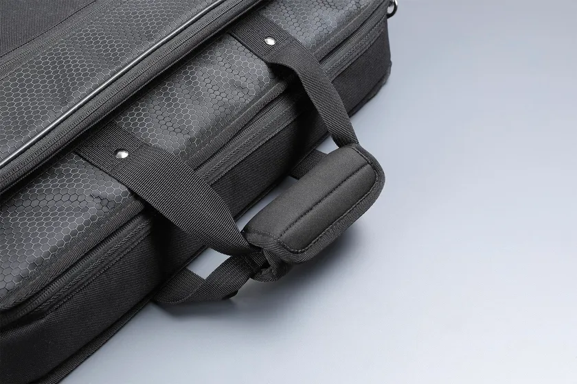 『CB-BM-M』、『CB-BM-S』は、耐久性に優れたポリエステル製の外装と柔らかなマイクロ・フリース製の内装を採用し、収納する機材をやさしく保護します。また、クッション性に優れたハンドル、長さ調節や取り外しが容易なショルダー・ストラップは、運搬時の疲労を軽減します。