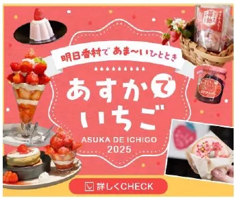 明日香村(奈良県高市郡、村長:森川裕一)は、村の特産いちご「あすかルビー」を、「体験」「食」「買」などあらゆる分野で楽しむことができる「あすかでいちごキャンペーン」を2025 年1 月から順次実施します。