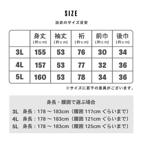 【適応サイズの目安(浴衣)】