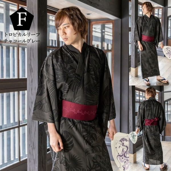 縞、龍、幾何学などスタンダードなモチーフを紺や白、黒、グレーといった定番色でまとめた浴衣は、初心者さんにも着こなしやすいデザインです。その一方で、アロハシャツのような熱帯植物モチーフや、グリーンやチャコールなど洋服で見られる色遣いなど、落ち着いていながらも個性を感じるデザインもあり、他にはないものをお探しの方にもご満足いただけるかと思います。