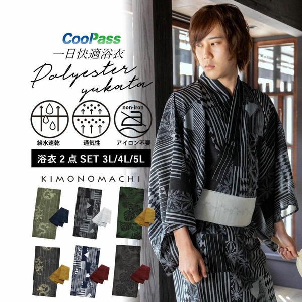 【浴衣2024】オリジナル男性浴衣新作発表。吸水速乾の高機能ポリエステル素材。京都発の和装ブランド【KIMONOMACHI】