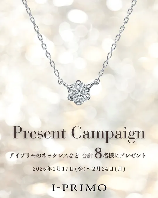 ブライダルジュエリーの企画・販売を行うプリモグローバルホールディングス株式会社(本社:東京都中央区、代表取締役:澤野 直樹)が運営するブライダルリング専門店「I-PRIMO(アイプリモ)」は、2025年1月17日(金)~2月24日(月)の間、公式Instagramアカウントにてプレゼントキャンペーンを開催いたします。