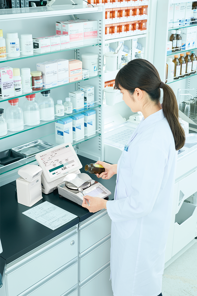 処方箋に基づく薬品チェックや計量をリアルタイムでチェックし、ヒューマンエラーを予防します。
