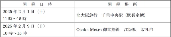 大阪市高速電気軌道株式会社(本社:大阪市西区、社長:河井英明、以下「Osaka Metro」)と北大阪急行電鉄株式会社(本社:大阪府豊中市、社長:奥野雅弘、以下「北大阪急行」)は、2025年2月24日(祝・月)に相互直通運転の開始から55周年を迎えることを記念し、ヘッドマークの掲出やコラボグッズの発売など記念事業を実施します。