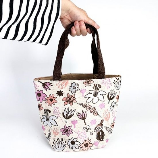 マチが薄いので持ち運び時にもスマート♪お花の中には、ムーミンだけでなくリトルミィやニョロニョロの姿も見えますね。