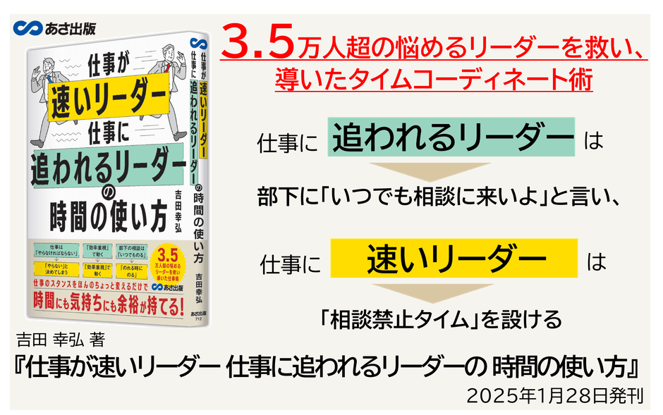 【3.5万人超の悩めるリーダーを救い、導いたタイムコーディネート術】吉田 幸弘 著『仕事が速いリーダー 仕事に追われるリーダーの 時間の使い方』2025年1月28日刊行