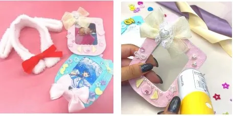 人工レザー+リボン1つ+パーツ付け放題のここでしかできないトレカデコができます。