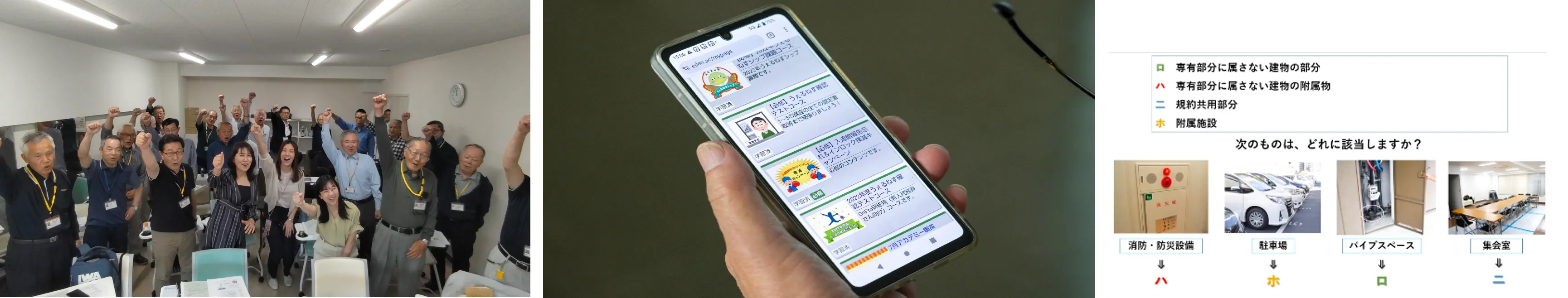 ・各地で開催する業務研修やエリア会内で、「管理業務主任者」資格保有者や受験挑戦者による座談会を実施し、受験に迷っている代務員の挑戦を後押ししています。