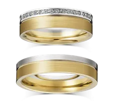ゴールドリングにフルエタニティを2連づけしているかのようなリュクスなデザイン2色の細目にラインを入れて、メリハリをつけています。