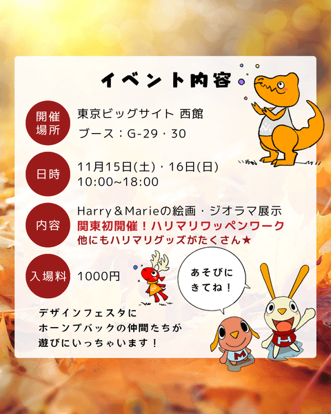 ハリマ紙器印刷工業株式会社(以下「ハリマ紙器」)が展開するキャラクター「Harry&Marie(ハリー&マリー)」が2025年11月15日(土)16日(日)東京ビックサイトで開催される、『デザインフェスタvol.62』に出展いたします。