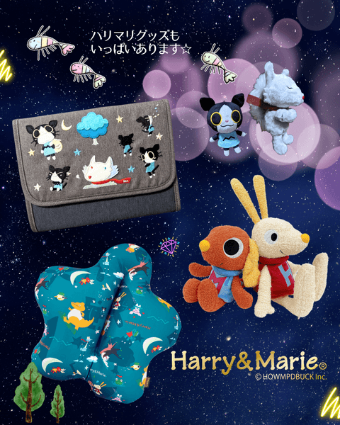 普段は姫路城の近くの「ハリマリカフェ」やオンラインでしか買えない「ハリマリグッズ」もお楽しみいただけます✨ 新作の絵本やぬいぐるみ、大人気の「ウォルフとモマちゃんのポーチ」も!!