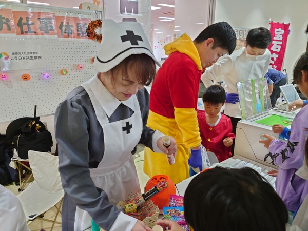 2025年10月26日(日)、鴻巣市で開催された「親子交流フェス」に、こうのす共生病院のMEET⁺(ミータス)チームが参加し、薬剤師体験ブースを出展しました。