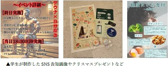イベント当日の2週間前から、学生が作成した告知画像をSNSにて発信。高い閲覧数、リーチ数を記録しました。また告知後にお客様から店舗へ問い合わせがあるなど一定の反響がありました。さらにイベント当日の学生がロウリュを行った時間帯については平常時の約1.8倍の集客を記録。単なる賑やかしイベントではなく、実績を伴った集客イベントに昇華することができました。