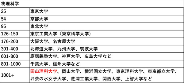 「物理科学」分野で国内18位タイ/岡山大学、東京理科大学などと同ランクに