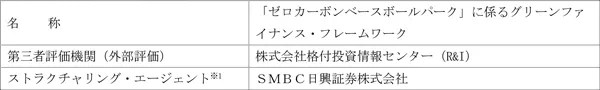 「ゼロカーボンベースボールパーク」を資金使途とする グリーンファイナンス・フレームワークを策定