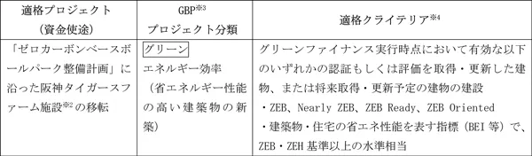 ※2 適格プロジェクトの対象となる阪神タイガースファーム施設は以下の3施設です。
