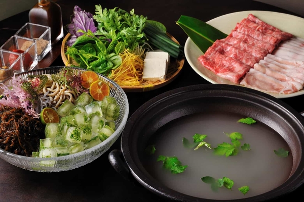2日目の夕食は南風が吹き抜ける客室に氷で冷やして食べる島鍋を用意します。豚肉や島豆腐、季節の野菜などがたっぷり入った鍋を、「命草(ぬちぐさ)氷」でさっぱりと楽しめる夕食です。命草とは、島で古くから健康のために役立てられてきたハーブや野菜類の総称で、爽やかな香りが夏の食欲をそそります。広々とした客室で、夜風を受けながら満喫できる夕食です。