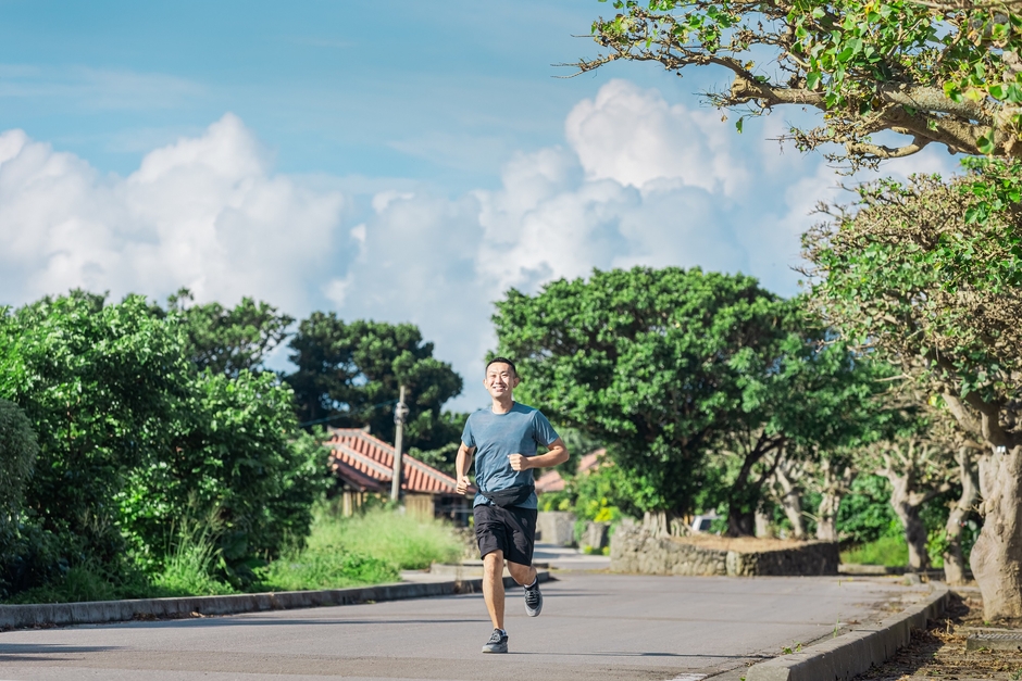 春の竹富島は過ごしやすい気温で、心地よい南風が吹き始める時期です。 竹富島の集落や白砂、透き通った青色の海など、島ならではの景色を楽しみながら、この時期に外出するのが億劫になる花粉を気にせずに、走ることに集中できます。島風を感じながら早朝から走ることで、その日の仕事をすっきりした頭でスタートさせることができます。