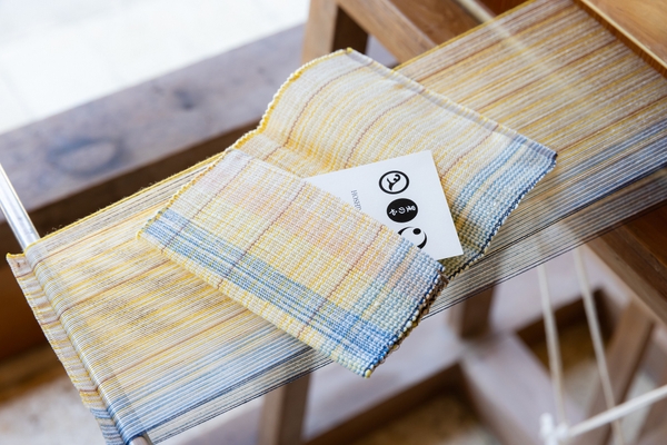 仕事が休みの時間には、八重山の伝統的な織り体験を楽しみます。「ゆんたくラウンジ」にある竹富島伝統の足踏み式木製織り機を使い、島の植物で染めた優しい色合いの糸で名刺入れを作る体験です。糸の色選びから始め、織りや縫合の工程など滞在中に少しずつ作業をし、最終日までに完成させます。普段とは異なる手先を使った作業に没頭することで、仕事で緊張していた脳内をリセットし、リフレッシュすることができます。