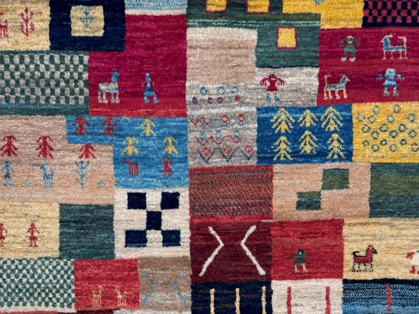 ギャッベ絨毯は、イランの山岳地帯の遊牧民が手織りで作った家庭用の絨毯で、羊の毛を刈って糸を紡ぎ、草木染で鮮やかな色を付けます。数百年、受け継がれた伝統技術でユネスコの「世界無形文化遺産」にも認定。長年使っても色が剥げることはなく、味わい深く変化していくのが魅力で、織り子の願いが込められた自然や動物などのモチーフはどれも“一点もの”です。