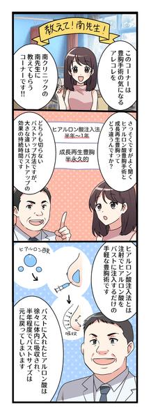 【マンガ】南クリニックが『教えて南先生!時間経過で吸収されていくヒアルロン酸と時間をかけて大きくなる成長再生豊胸。違いを徹底解説!』を公開しました。