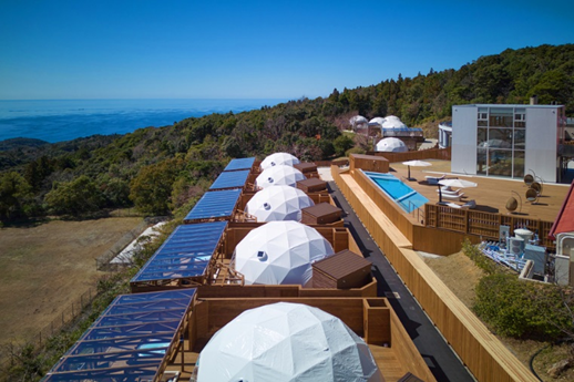 Glamping Resort GLANSOはあぐりの丘リゾート内に位置し、長崎市で初めてできたグランピング施設です。まるでスイートルームの様な居心地を再現した「OCEAN SUITE DOME」では、1棟当たりの広さはテラスも入れて約120平米。大人6名様でもゆとりを持ってご滞在頂けます。また人気の美容機器「ReFa」や外のテラスにはジャグジー、テント内にはシャワー室とお手洗いを完備しています。また、大自然に囲まれた「FOREST DOME」ではアジアンスタイル・北欧スタイル・西海岸スタイルとインテリアが異なる3つのテイストのお部屋をご用意しております。最大大人5名様まで宿泊可能で、自然との一体感が感じられるドーム型のリゾート空間です。合わせて全12棟、それぞれ異なるタイプのドームテントがあります。グランピングに宿泊者専用の年中入れるプールやサウナもご利用頂けます。