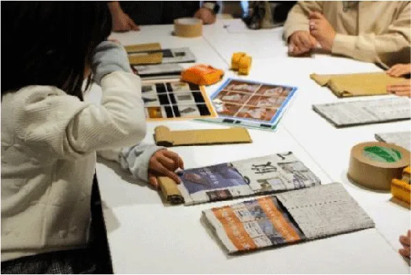 最後に、丈夫な新聞紙スリッパの作り方を学び、自分で考えた対策との比較を体感します。