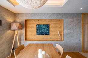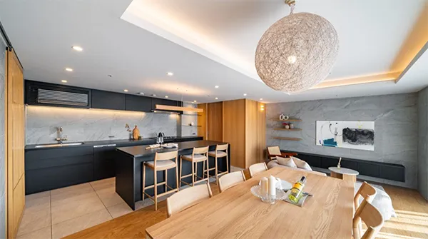本物件は現行の高さ制限では建築不可の12階に位置し、南向きで眺望・日当たりが良く、京都で過ごす時間をより穏やかで心地よいものにします。室内にはプライベートサウナを設置し、各所にアートを飾るスペースを設けることで、日常の喧騒から離れ、心身ともに満たされた生活をご提案します。
