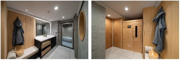 株式会社神戸メディケアの日本製サウナ「NATURAL SPA LOYLY&DRY」を初採用。気密性と断熱性を兼ね備えた本格的なサウナは、最大温度110℃でロウリュ(湿式)とドライ(乾式)の2タイプのサウナを愉しむことができます。電気用品安全法(PSE)にも適合しており、安心してご利用いただけます。