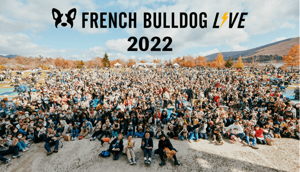 2022年11月12日(土)、同会場にて「French Bulldog LIVE 2022-秋-(フレブルLIVE)」を開催しました。約2,500頭のフレンチブルドッグと4,000名のオーナーが集結し、国内初の、愛犬とオーナーが一緒に楽しめる「エンターテイメント型」野外イベントとして大盛況に終わりました。
