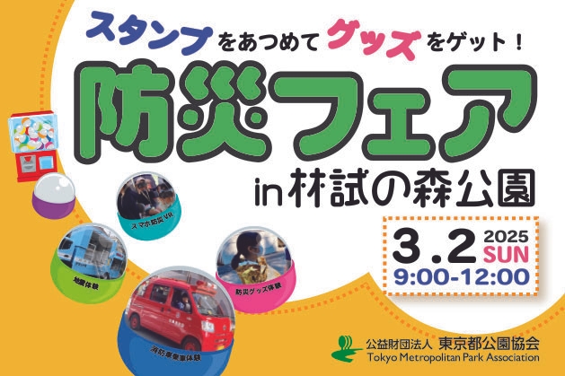 (公財)東京都公園協会は、下記の協力事業者と連携し、「防災フェアin林試の森公園」を実施します。