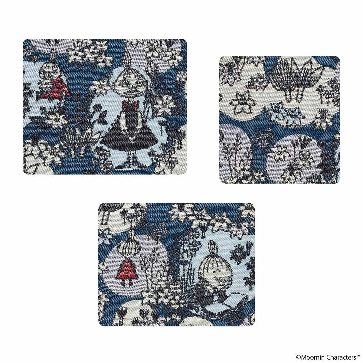 どんな装いにも合うシックなブルー系のカラーに、ジャカード織で表現されたミムラねえさんとリトルミイ。