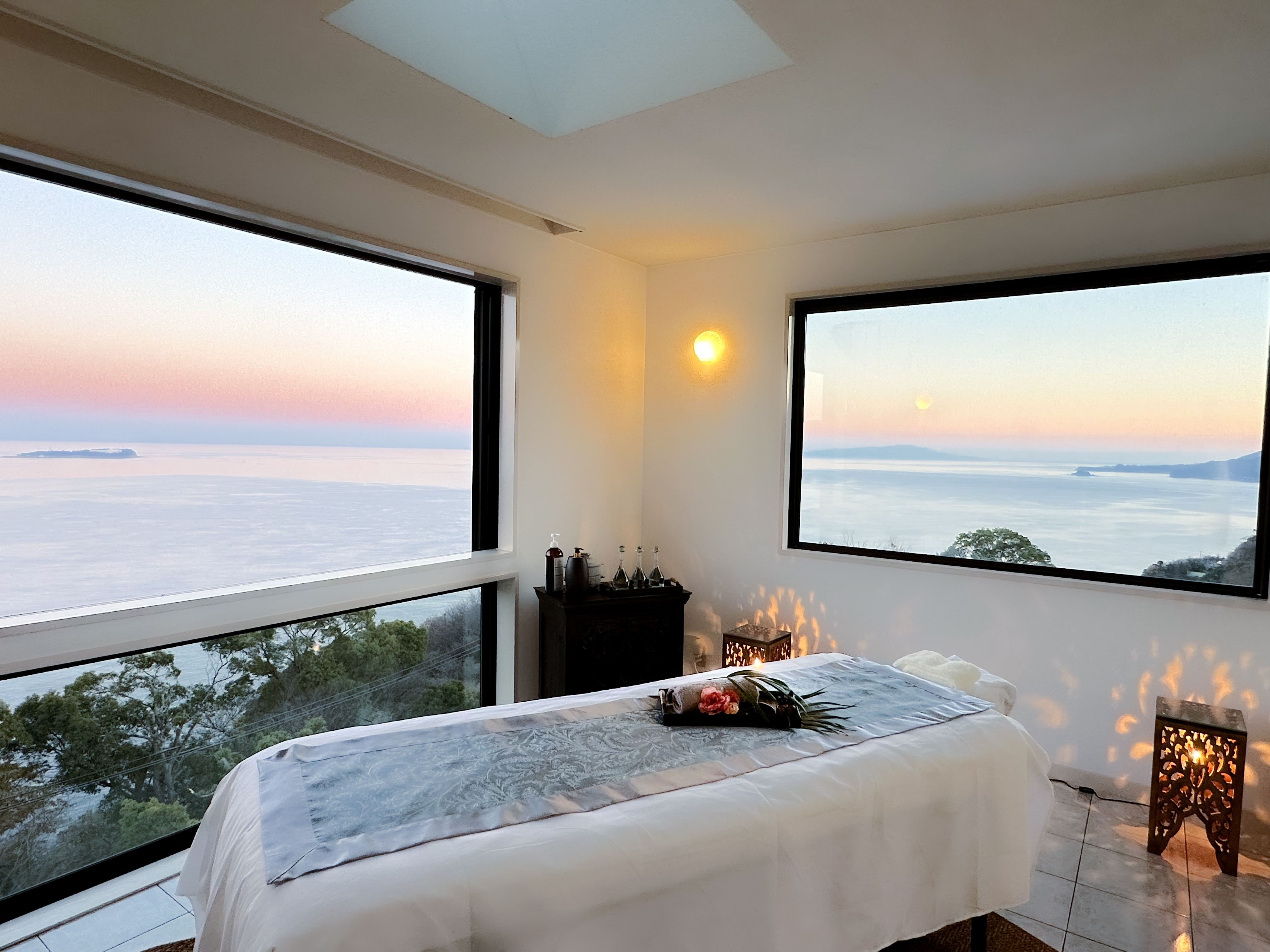 満月を眺めながらのスパ。刻一刻と移り変わる海と空の彩り。