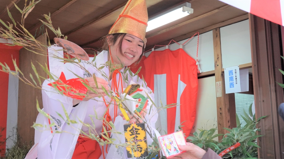 参拝者への福笹授与と能登半島地震の義援金募金活動