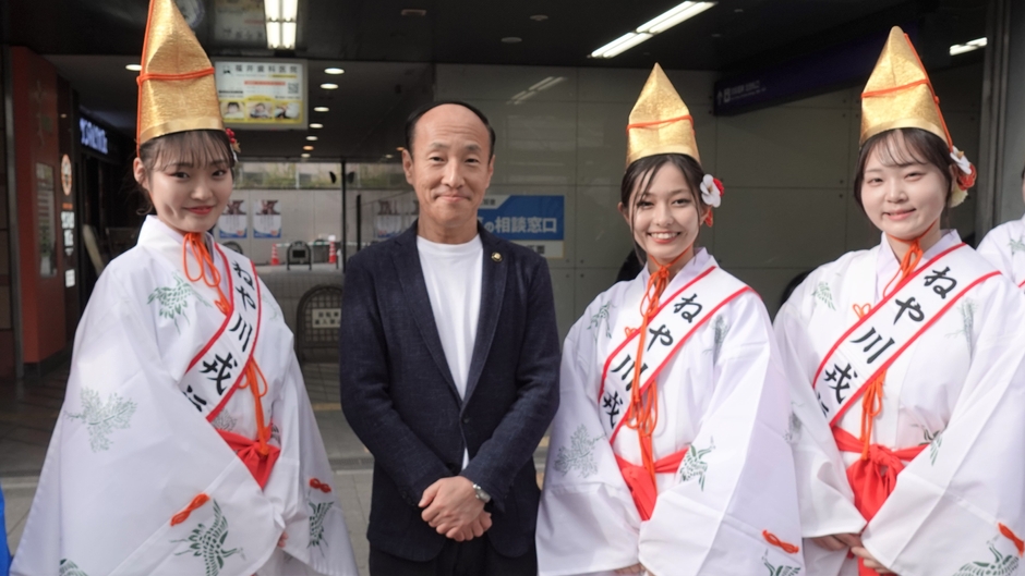 寝屋川市役所・大阪府寝屋川警察署と連携した特殊詐欺被害防止の街頭啓発活動(京阪寝屋川市駅前)