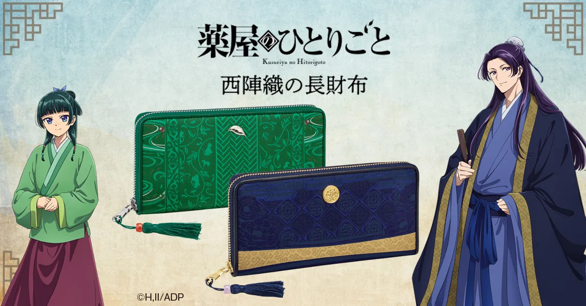 日本各地の伝統工芸品とコラボしたキャラクターグッズを多数手がけてきたPREMICO(プレミコ)から、TVアニメ『薬屋のひとりごと』の西陣織の長財布が登場しました。