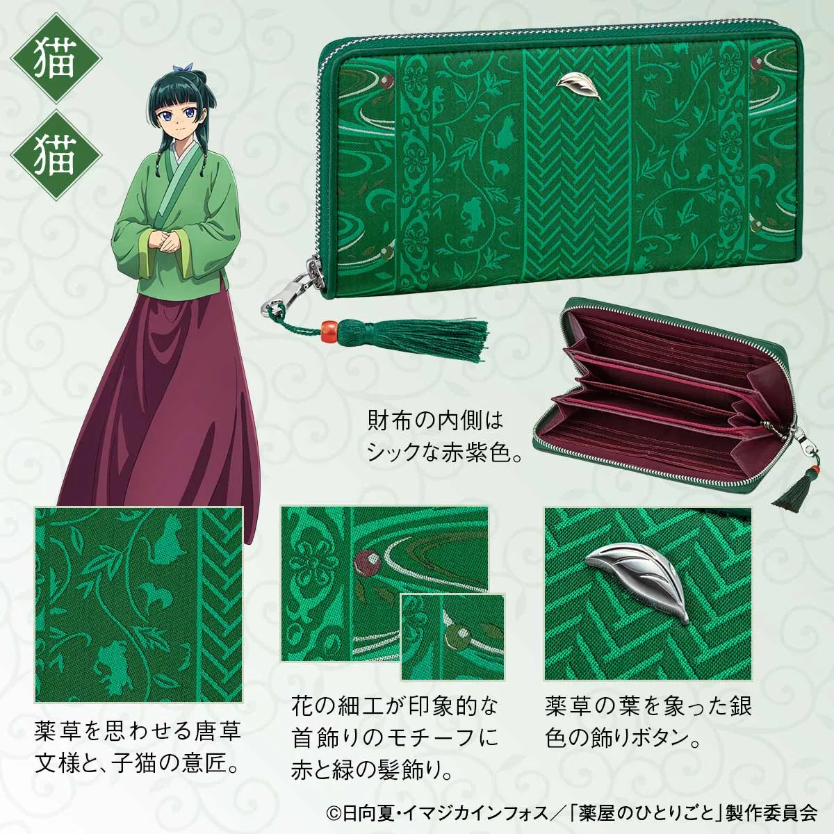 TVアニメ『薬屋のひとりごと』と伝統工芸「西陣織」がコラボ! 猫猫と壬氏の華やかな長財布が登場!